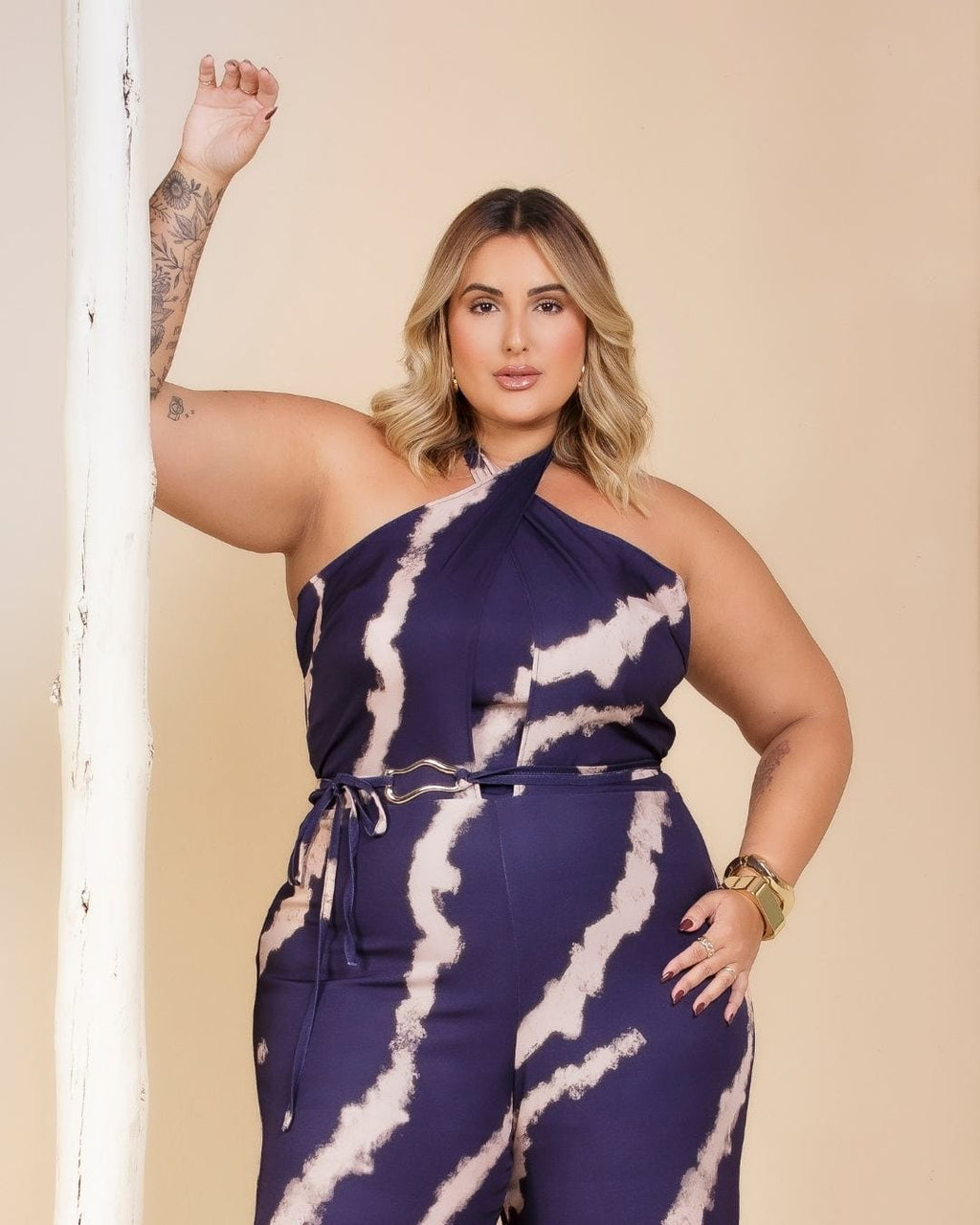 O Macacão Gizele Martin é a escolha ideal para quem busca uma peça moderna, fluida e com presença. Com modelagem ampla e design sofisticado, ele valoriza a silhueta com fluidez, perfeição para ambientes diurnos ou ocasiões especiais.